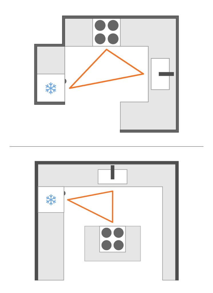- Le triangle d’activité : Le principe du triangle d’activité, qui relie l’évier, le réfrigérateur et les plaques de cuisson, est la base d’une cuisine fonctionnelle. Il est essentiel de minimiser les distances entre ces trois points pour éviter les déplacements inutiles. Dans un appartement parisien, l’agencement doit être optimisé, qu’il s’agisse d’une cuisine en U, en L, en I ou avec un îlot central.